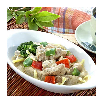 香濃香草清香.奶香起司香.鮮嫩雞肉塊...清香可口,令人著迷...建議您可以加上香濃的起司絲.將此道料理以焗烤方式呈現出來,增加順口香醇的風味...